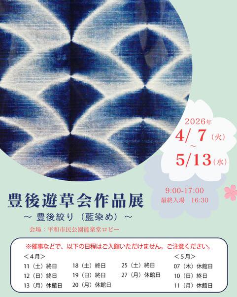 「豊後絞り」(藍染め)は、江戸時代に大分市鶴崎地区などで盛んに生産され、全国的に有名だった伝統工芸。